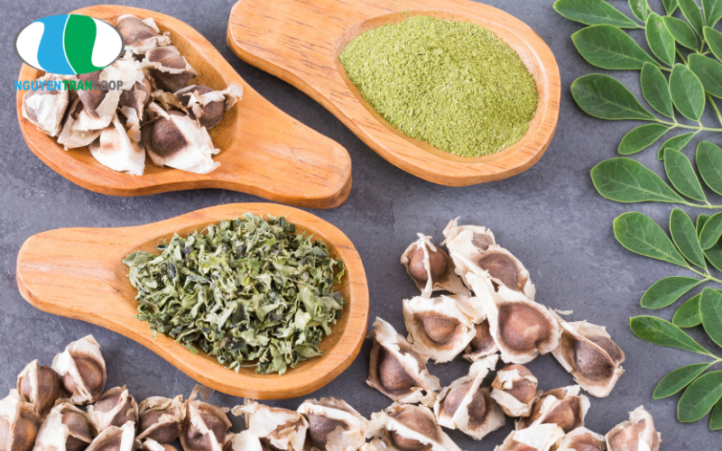 - Hạt Chùm Ngây không chỉ cung cấp lượng Protein mà còn bổ sung cho cơ thể các Axit béo Omega-3, chất chống Oxy hóa, Folate và chất xơ rất tốt cho sức khỏe, đồng thời chứa rất ít hàm lượng chất béo và không chứa Gluten gây dị ứng. Tổng hợp được các hợp chất như Alpha-sytosterol, Quercetin, Zeatin. Kaempferol và Axit caffe oylquinic giúp kháng sinh kháng nhiều độc tố và chống viêm nhiễm hiệu quả.